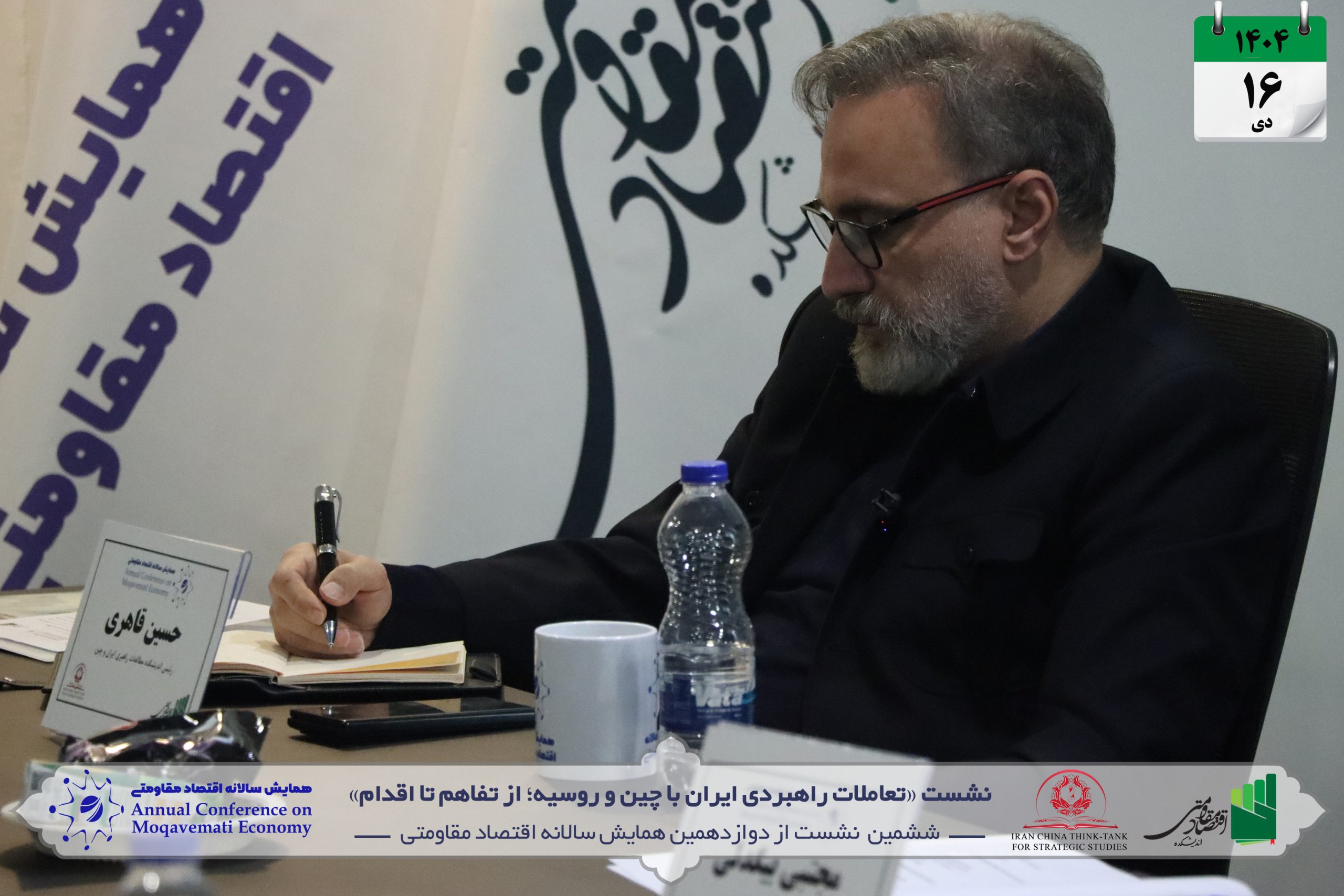 به گزارش واحد رویداد اندیشکده اقتصاد مقاومتی، نشست «تعاملات راهبردی ایران با چین و روسیه؛ از تفاهم تا اقدام» به عنوان ششمین نشست از دوازدهمین همایش سالانه اقتصاد مقاومتی در تاریخ سه شنبه ١۶ دی ماه ۱۴۰۴ از ساعت ۱۴ الی ۱۷، با مشارکت اندیشکده اقتصاد مقاومتی و اندیشکده مطالعات راهبردی ایران و چین و با حضور کارشناسان و مسئولین مرتبط برگزار شد.